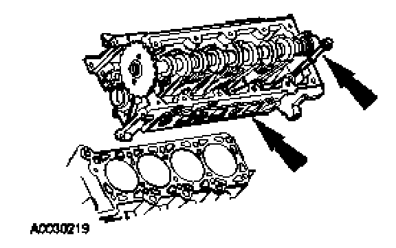 CAUTION: The gasket sealing surfaces on the cylinder head and cylinder block must be clean.