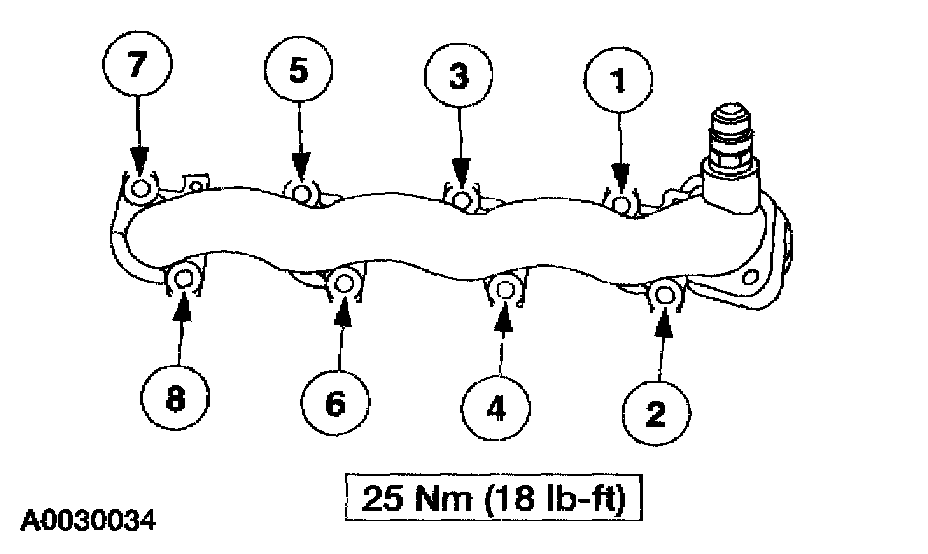 25. Install the RH exhaust manifold gaskets and the exhaust manifold. Tighten the nuts in the sequence shown.