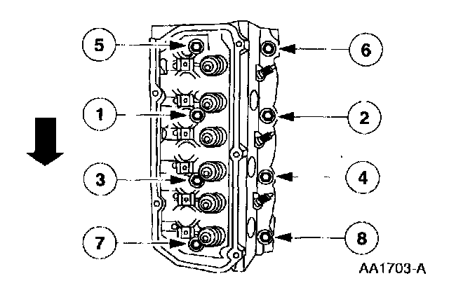 NOTE: The short bolts are numbered 2, 4, 6 and 8 and the long bolts numbered 1, 3, 5 and 7.