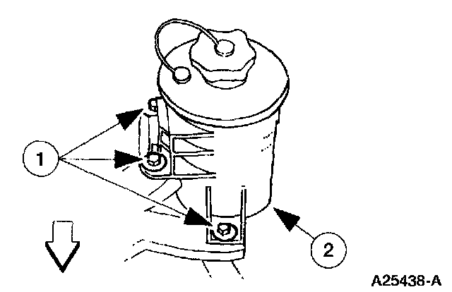 1 Position the power steering fluid reservoir.