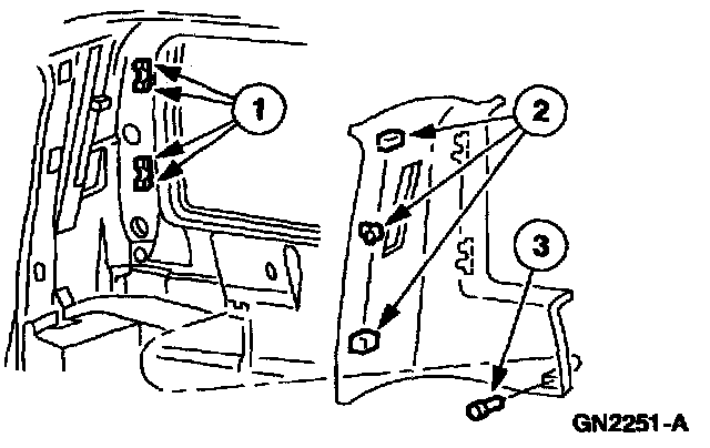 3 Slide the roof side trim panel out of the retainers and remove the roof side trim panel.