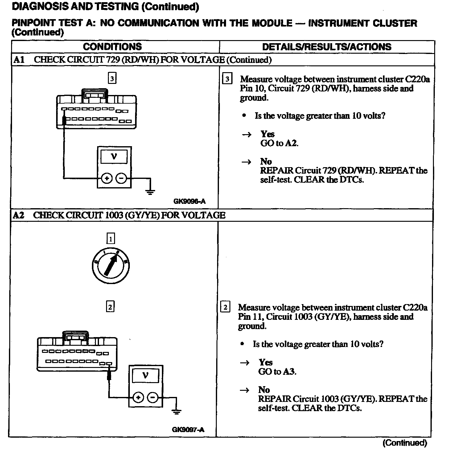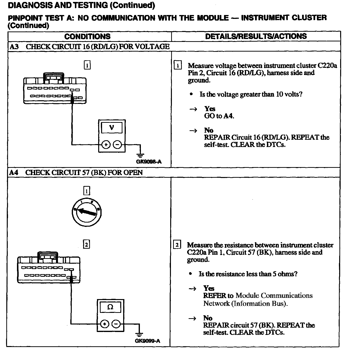Test A: No Communication With Instrument Cluster Module
