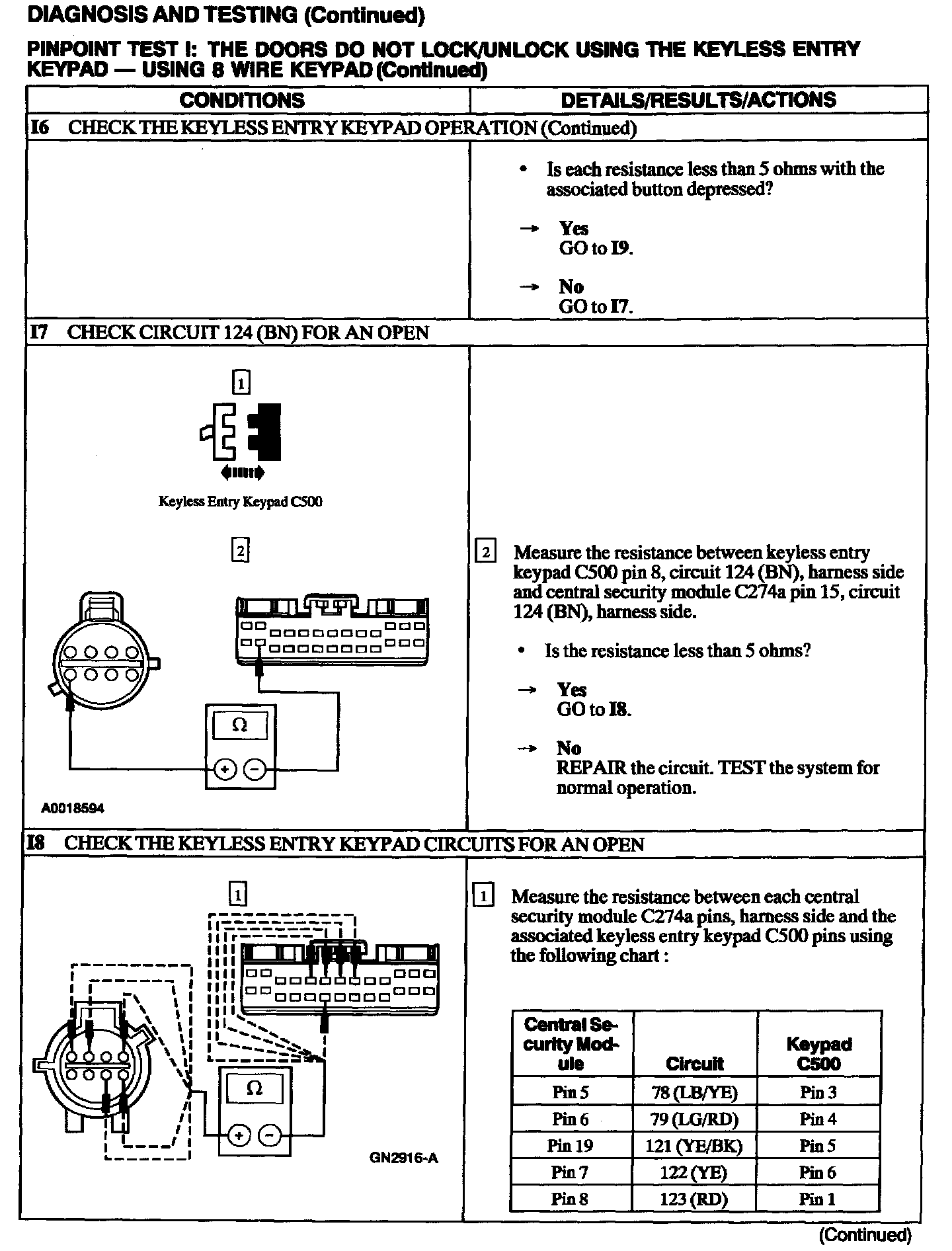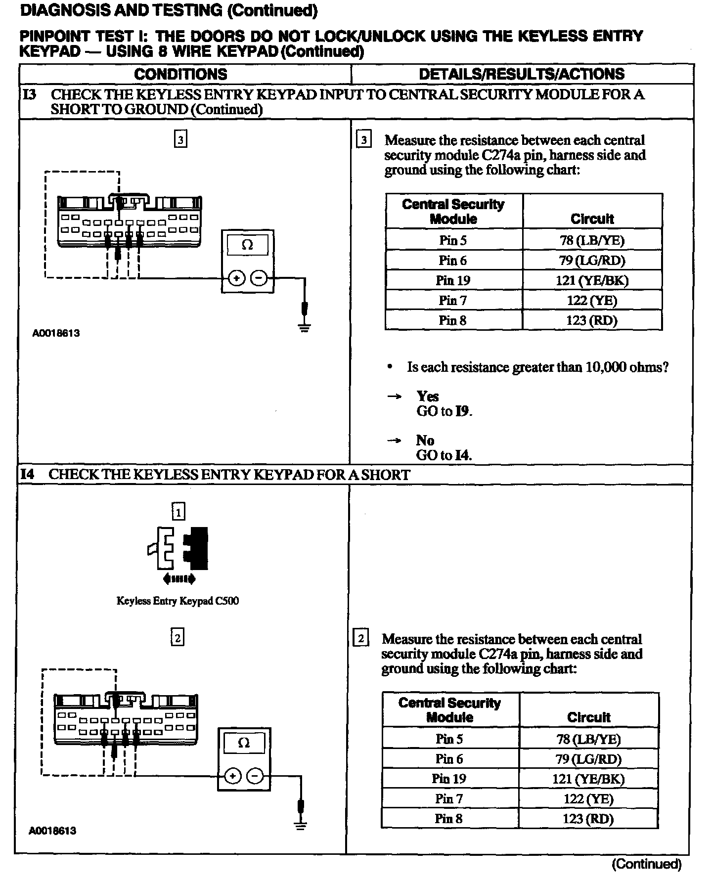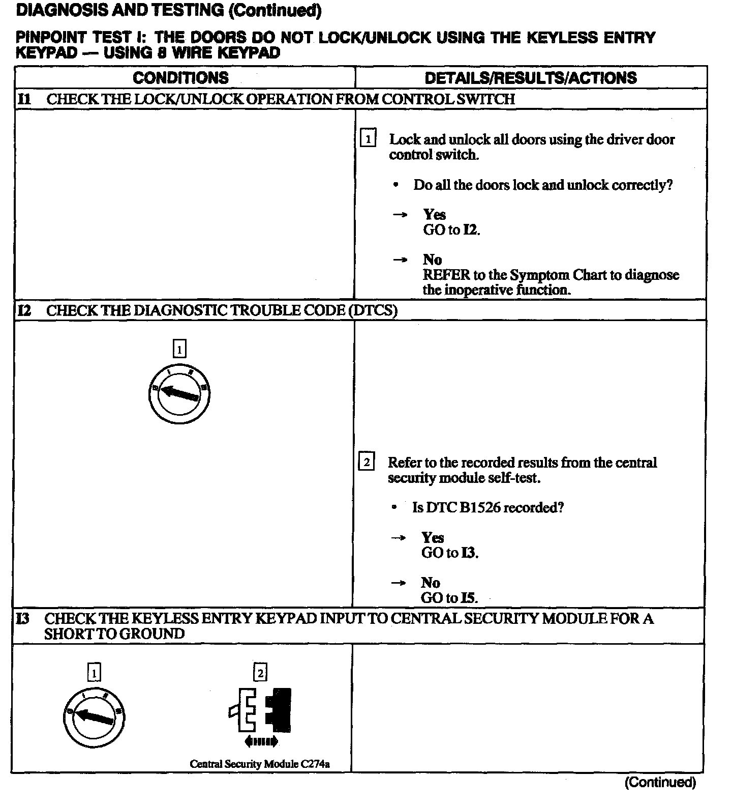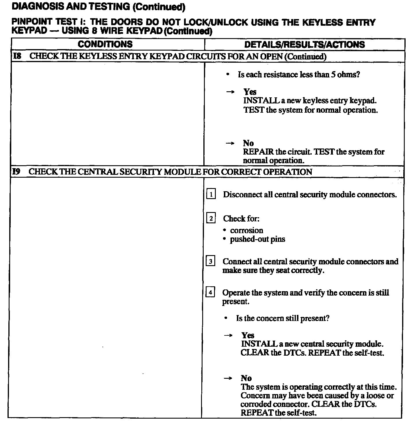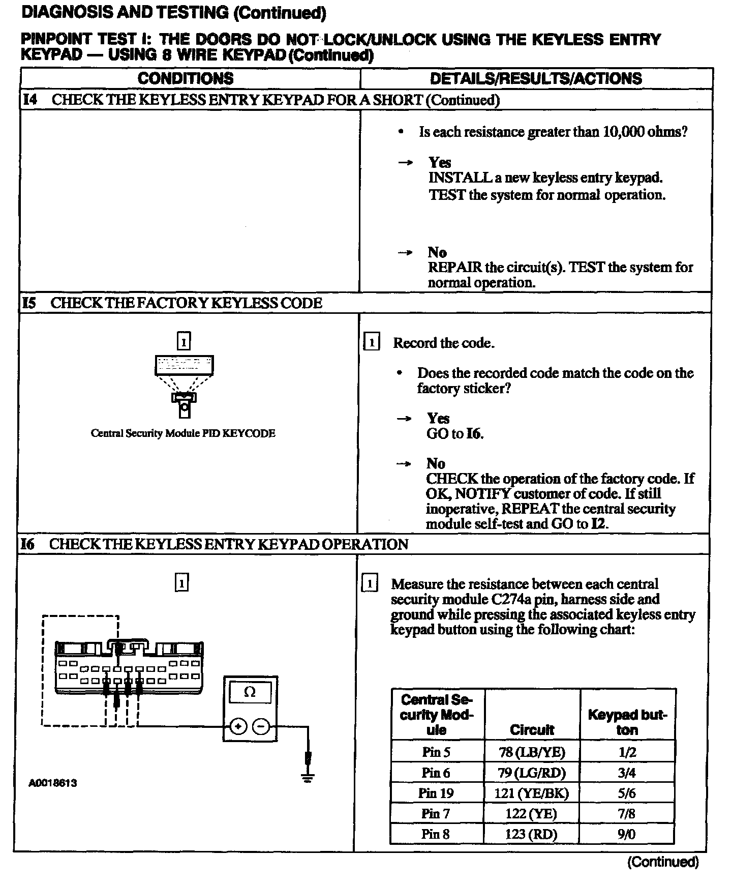 Test I: Doors Do Not Lock/Unlock Using the Keyless Entry Keypad - 8 Wire Keypad