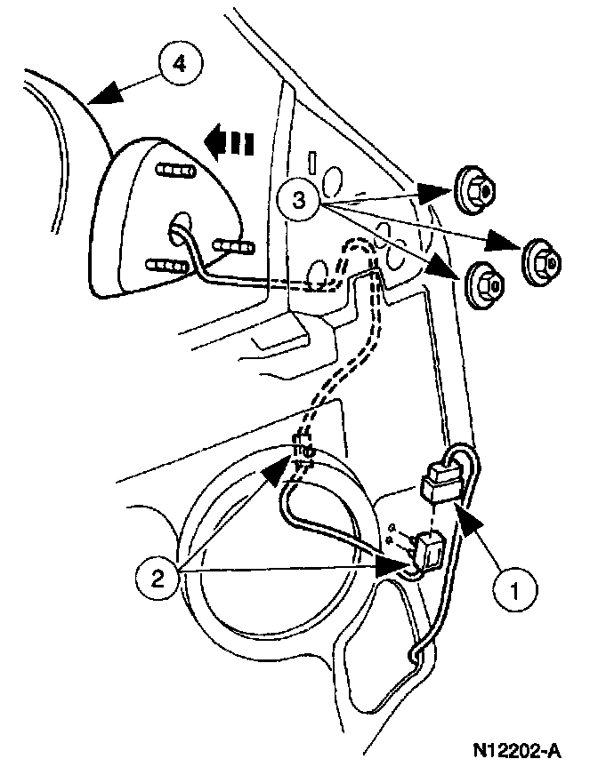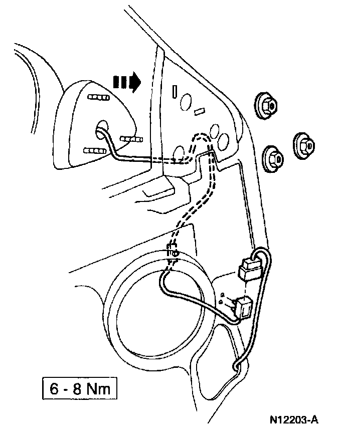 ^ Feed the power mirror wiring through the opening in the front door.
