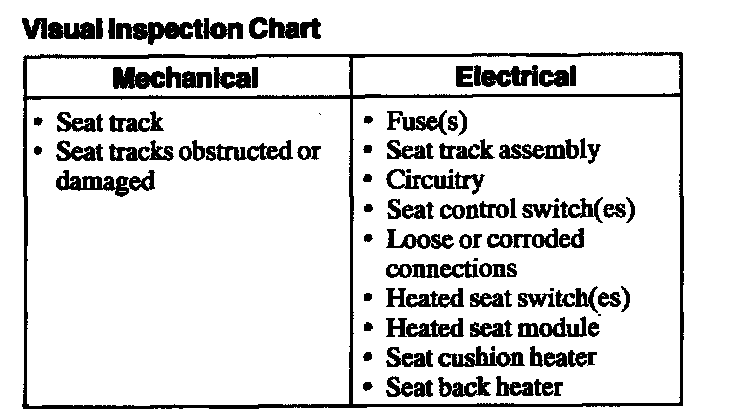 1. Verify the customer concern.Visual Inspection Chart: