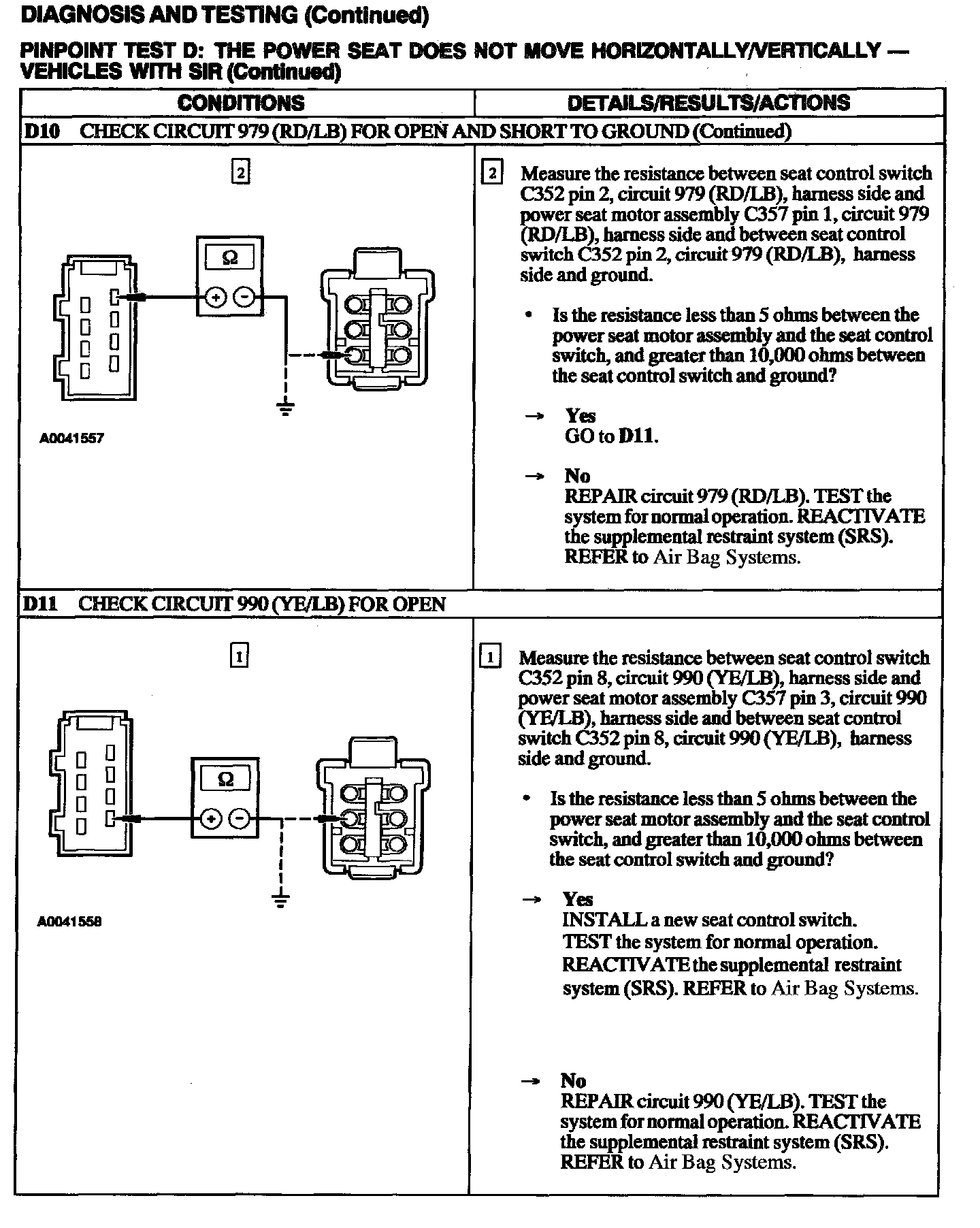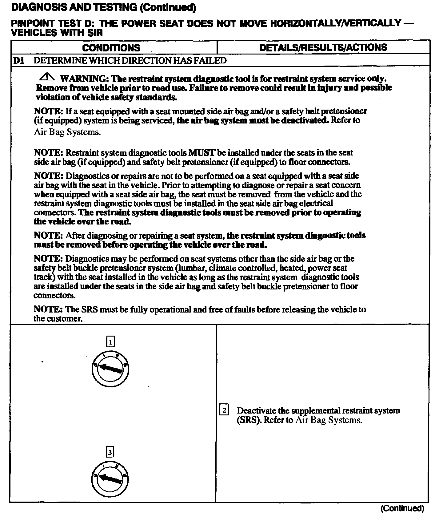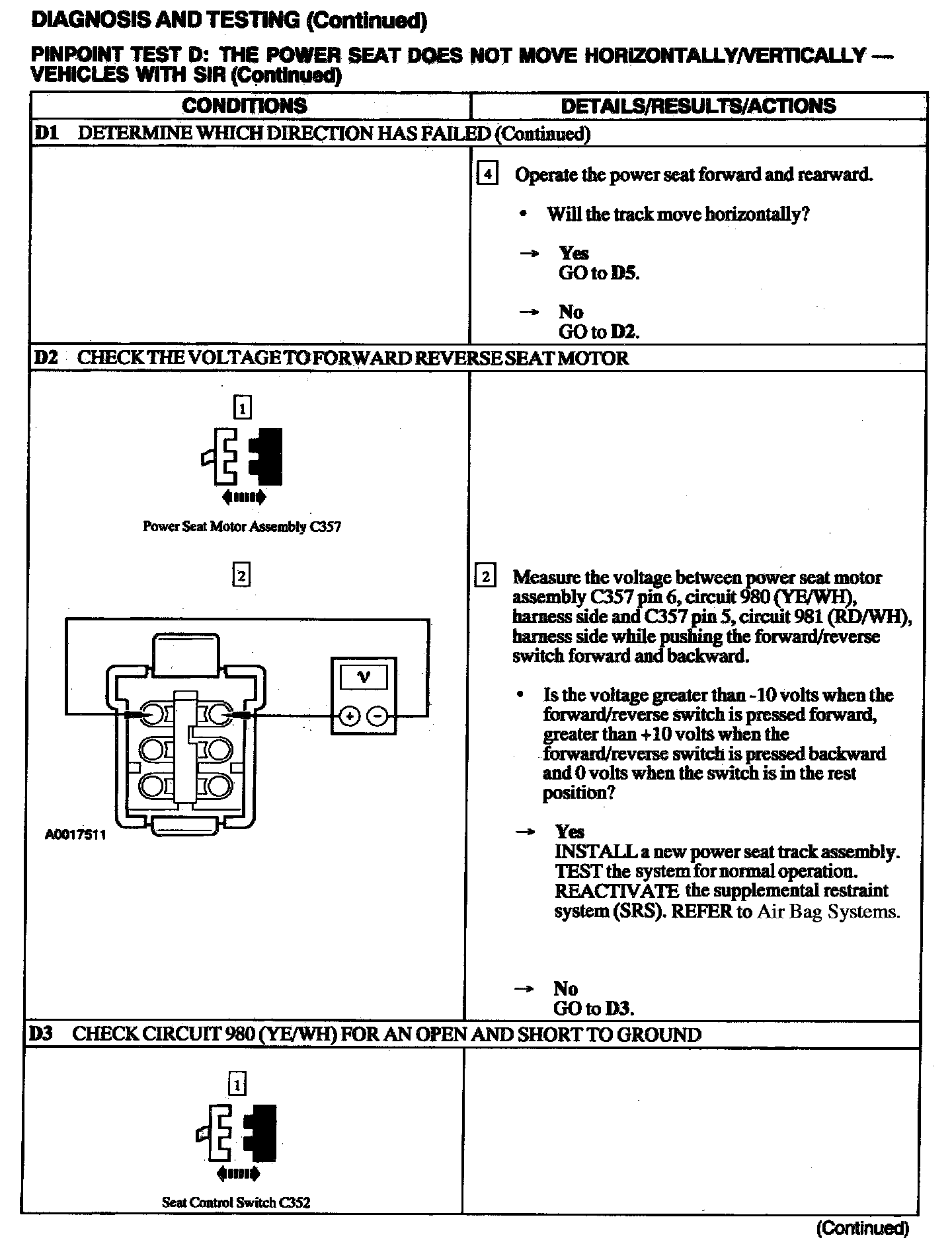 Test D: Power Seat Does Not Move Horizontally/Vertically-With SIR