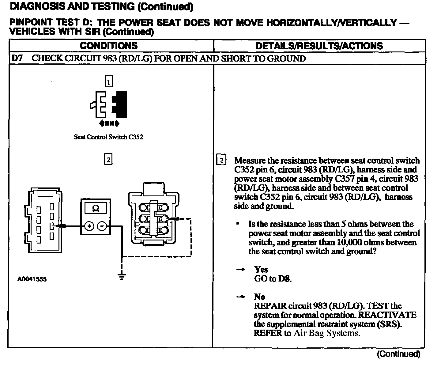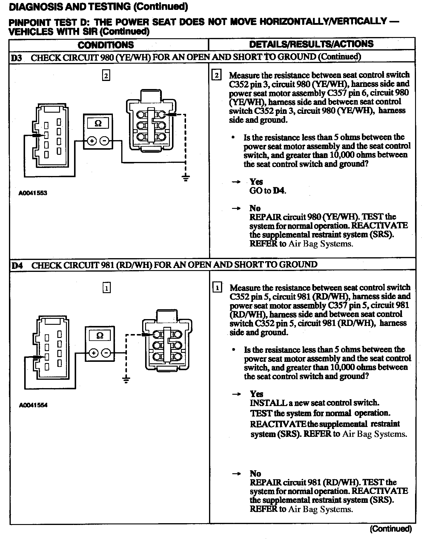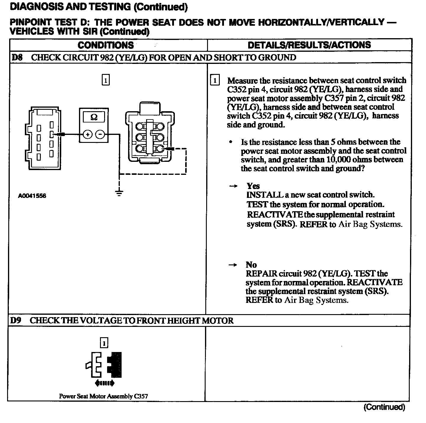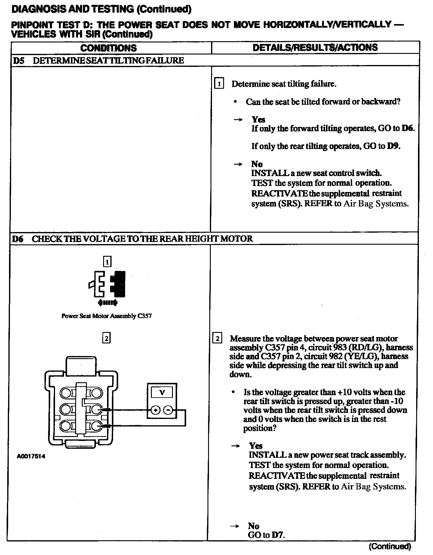 Test D: Power Seat Does Not Move Horizontally/Vertically-With SIR