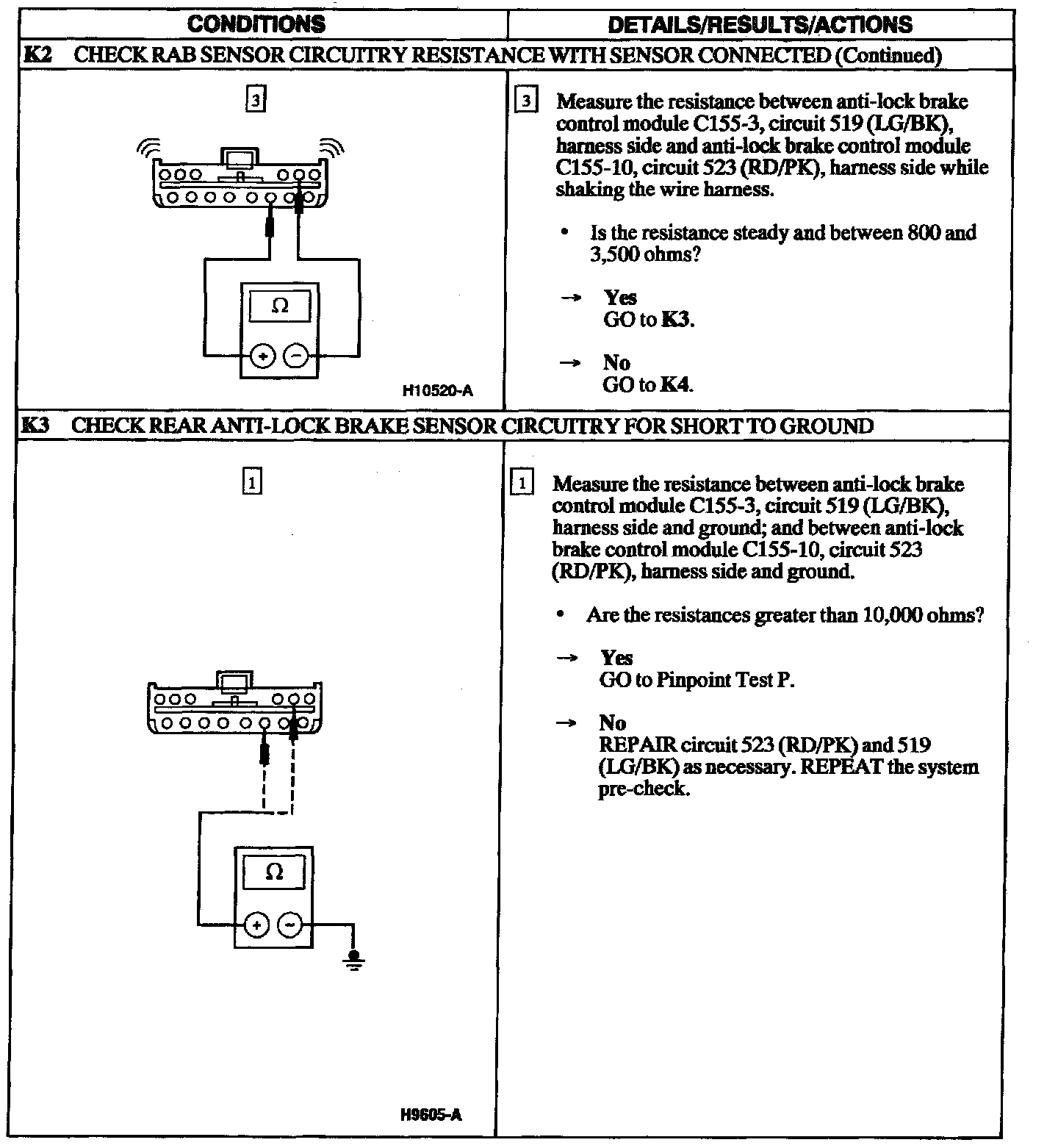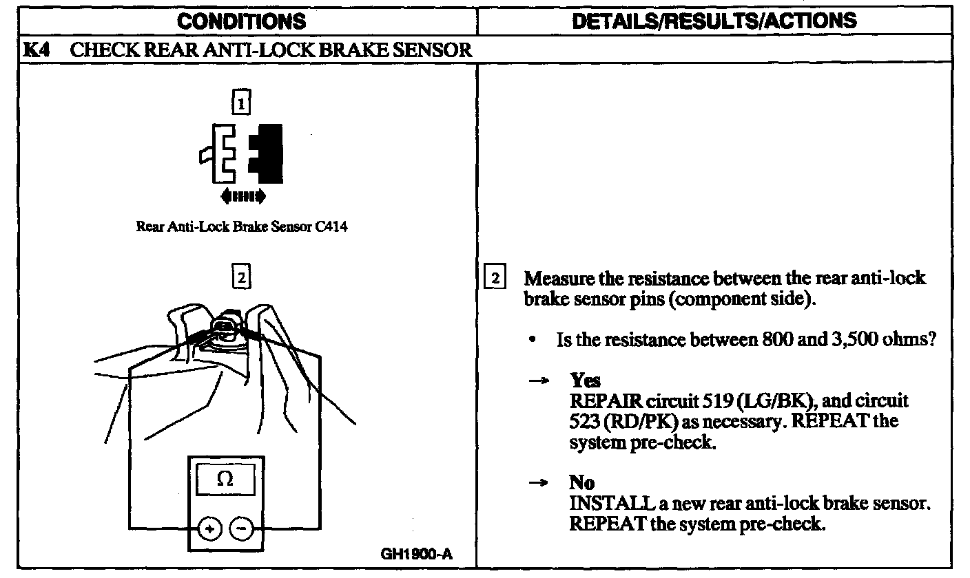 TEST K: DTC 9 - SPEED SENSOR HIGH RESISTANCE/OPEN CIRCUIT