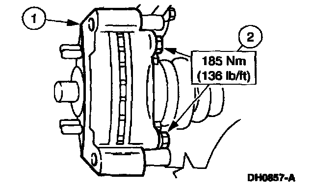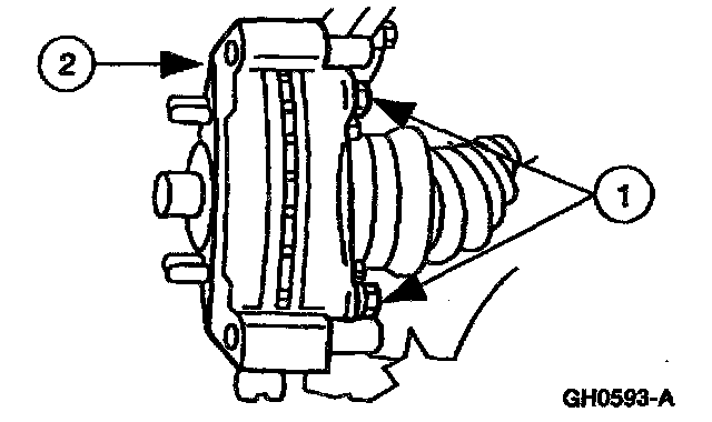 1 Remove the two front disc brake caliper anchor plate bolts.