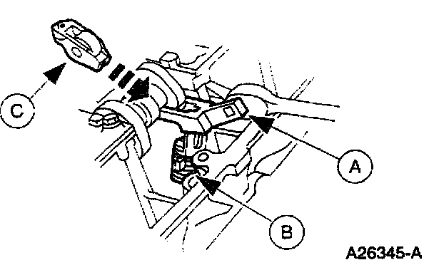 1. Use the (A) Valve Spring Compressor to compress the (B) valve spring and install the (C) camshaft roller followers in their original locations.
