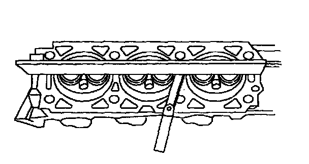 Use a straight edge and a feeler gauge to inspect the cylinder head for flatness. If the cylinder head is distorted, install a new cylinder head.