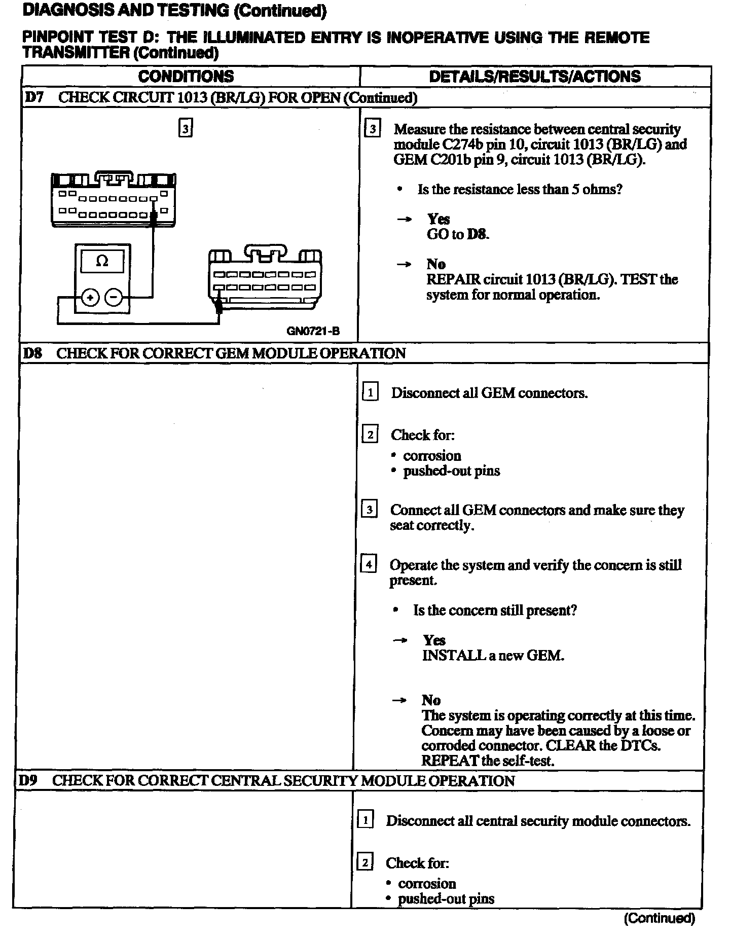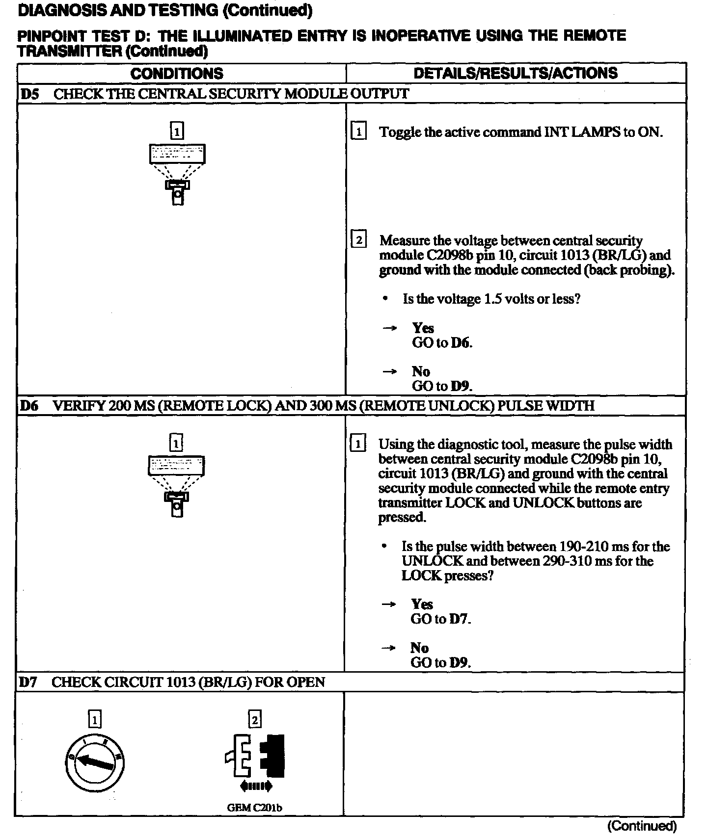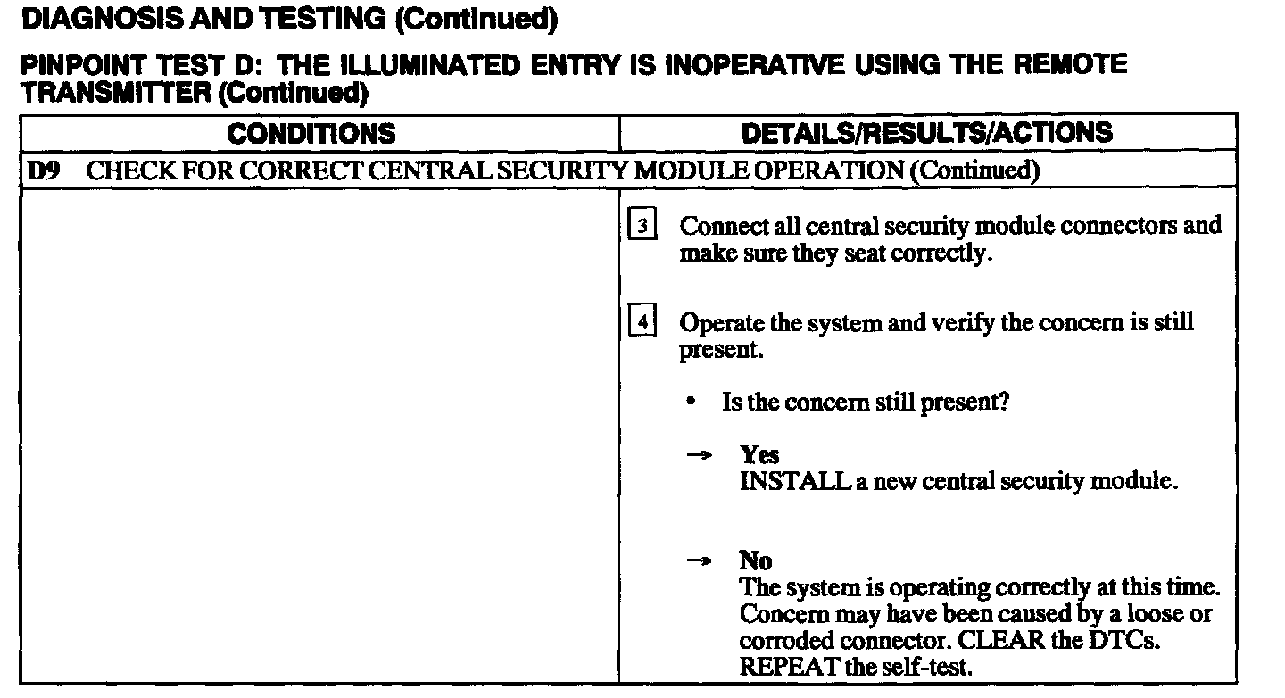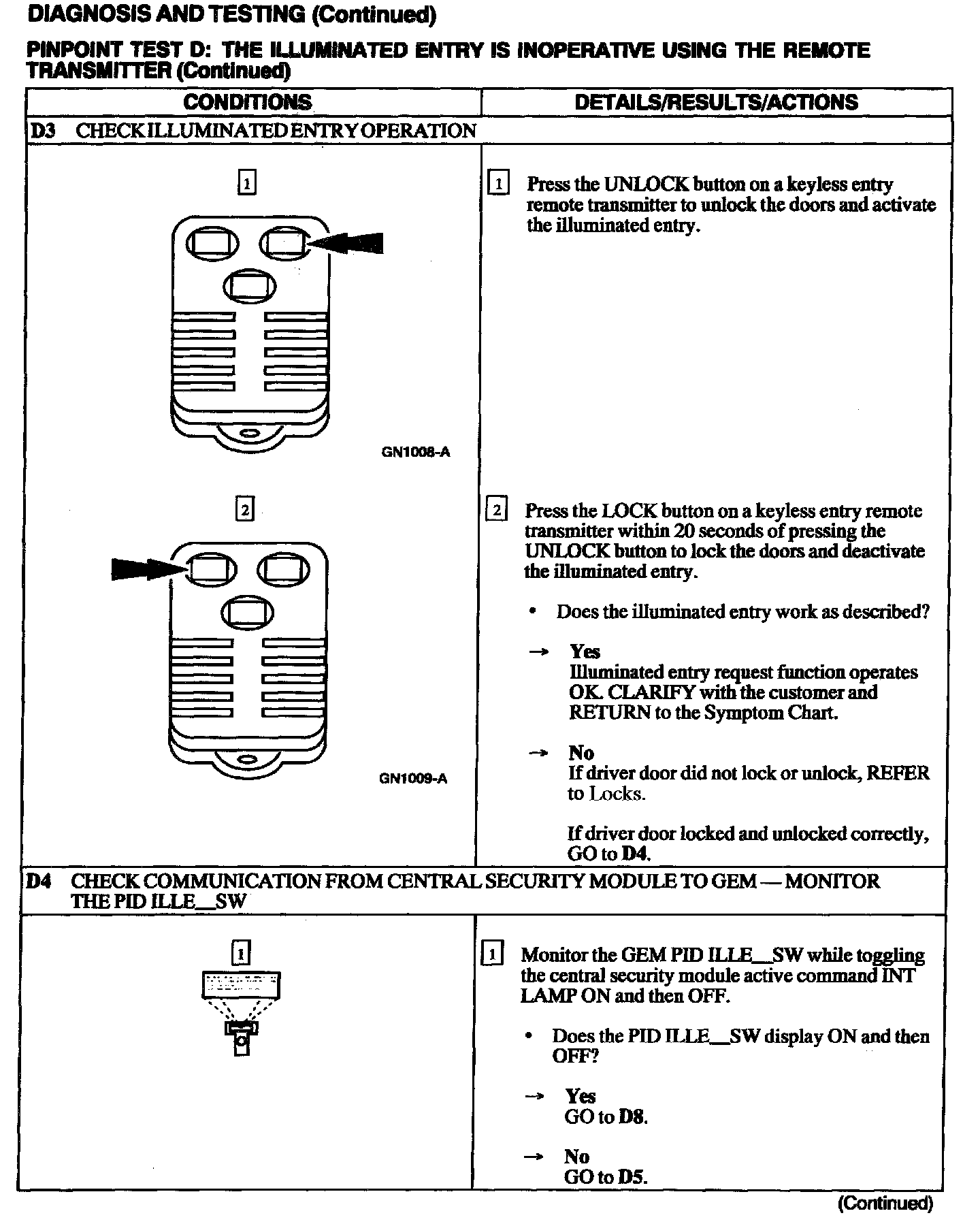 Test D: Illuminated Entry Inoperative Using Remote Transmitter