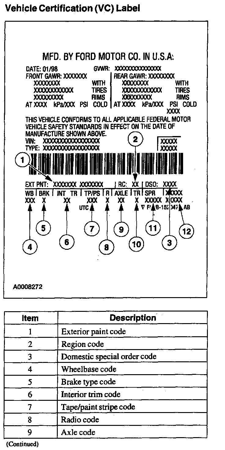 VEHICLE CERTIFICATION (VC) LABEL REFERENCE