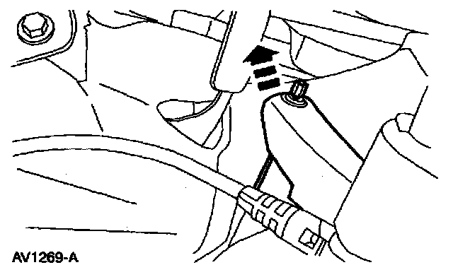 REMOVAL1. Depress the locking tabs on the accelerator pedal drive cable and remove the drive cable from the accelerator pedal assembly.