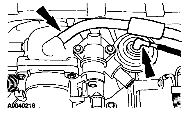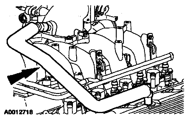 4. Connect the evaporative emission canister purge valve hose and the EGR valve vacuum hose.