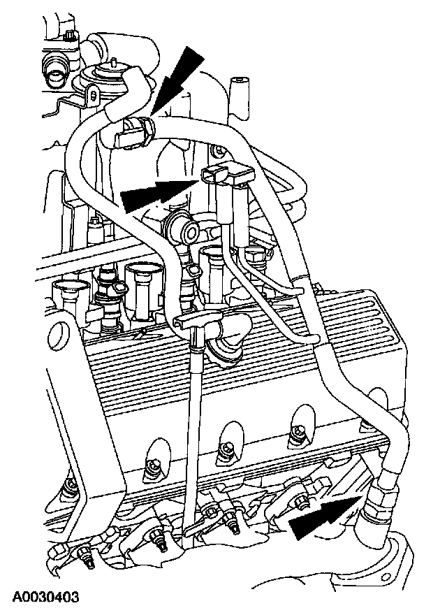 14. Disconnect the EGR valve vacuum hose and the evaporative emission canister purge valve hose and position them aside.