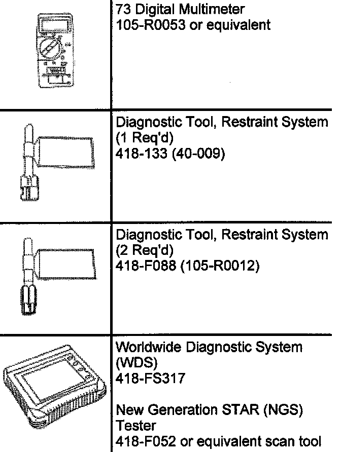 Do not perform any pinpoint test unless directed by the symptom chart. Restraint System Diagnostic Tool Warning