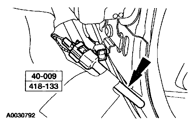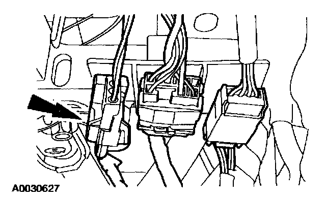 2. Remove the restraint system diagnostic tool from the driver side safety belt retractor pretensioner electrical connector.