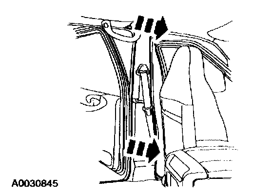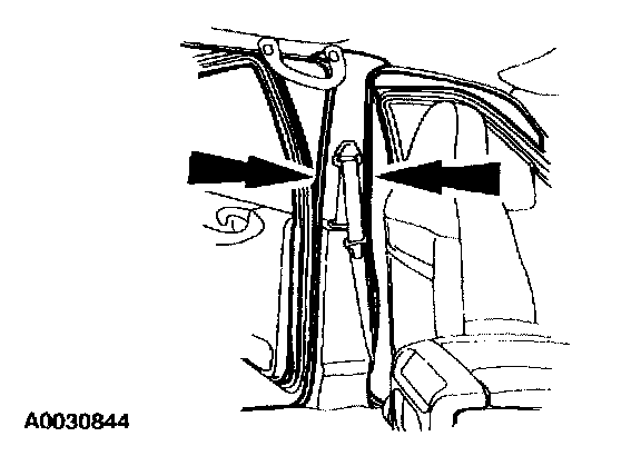 CAUTION: Inspect the shoulder safety belt guide cover for damage. If the shoulder safety belt guide cover is damaged or if it does not remain closed, install a new shoulder safety belt guide cover.