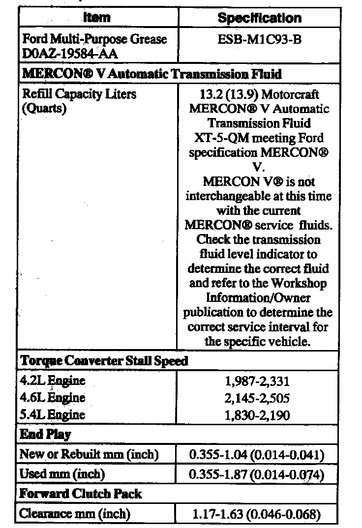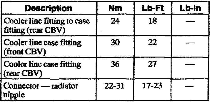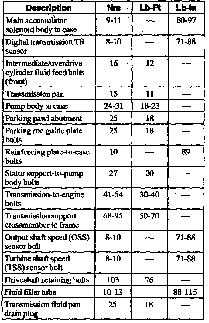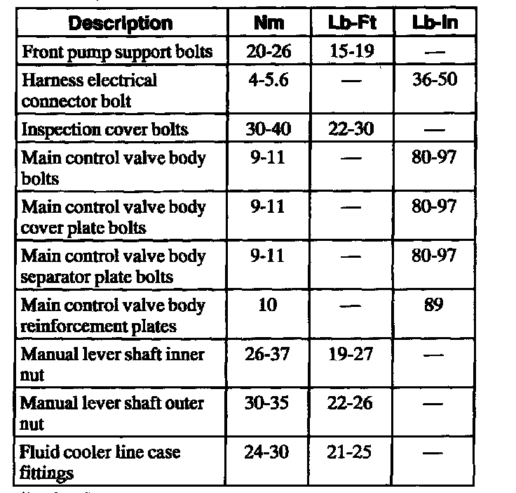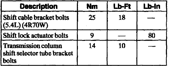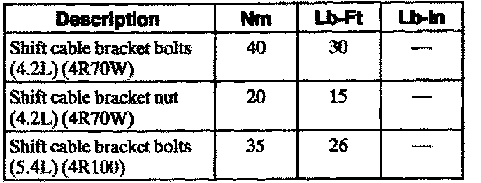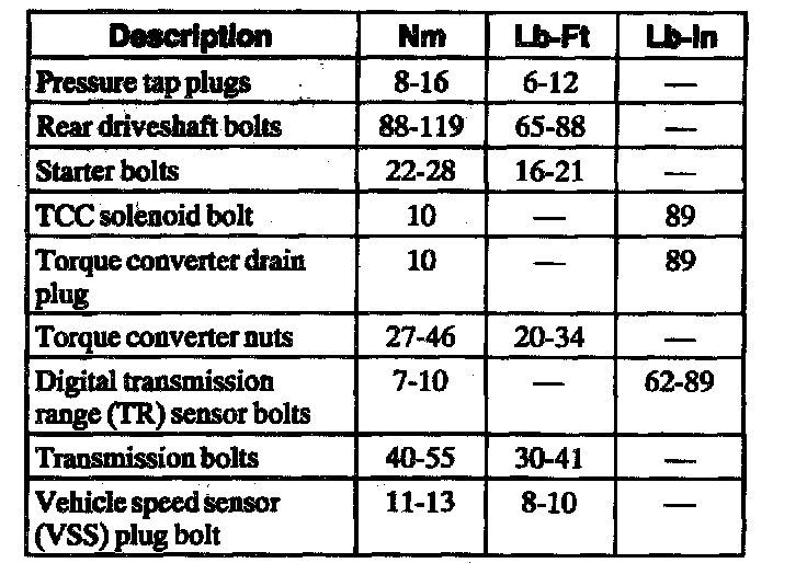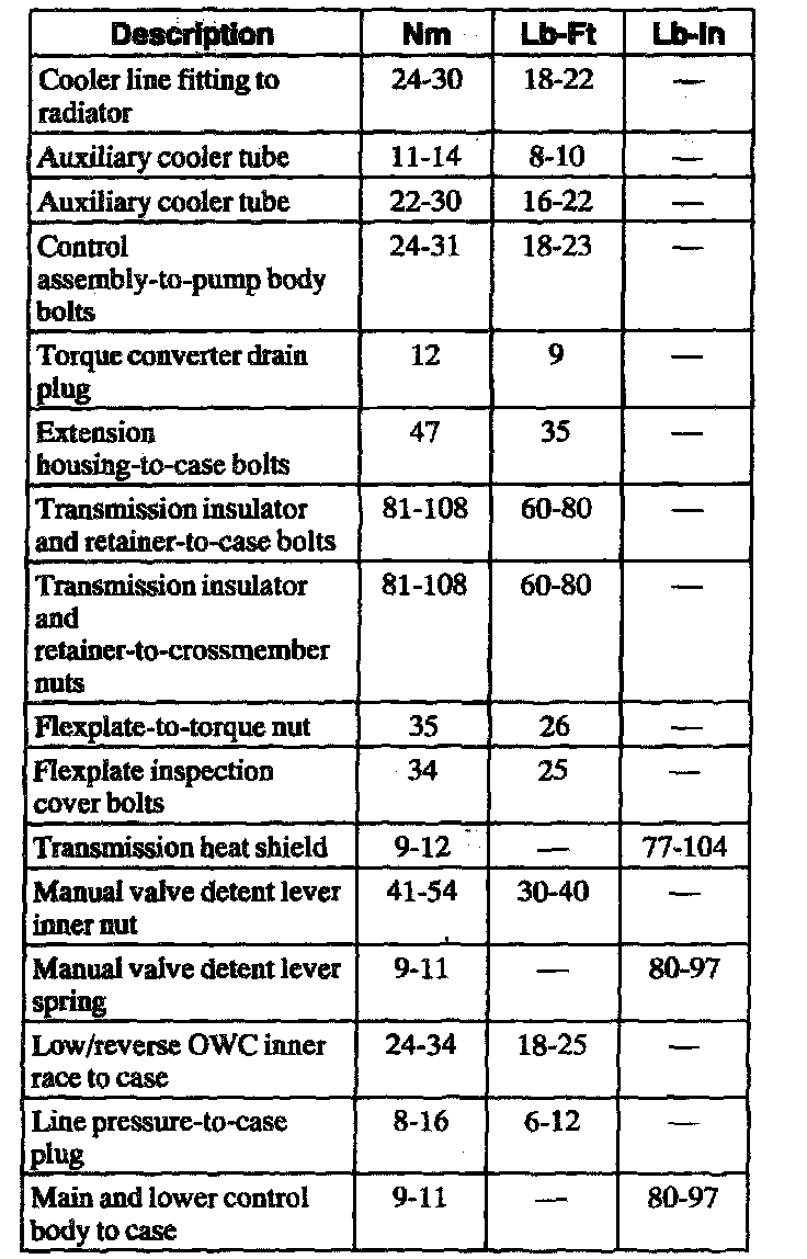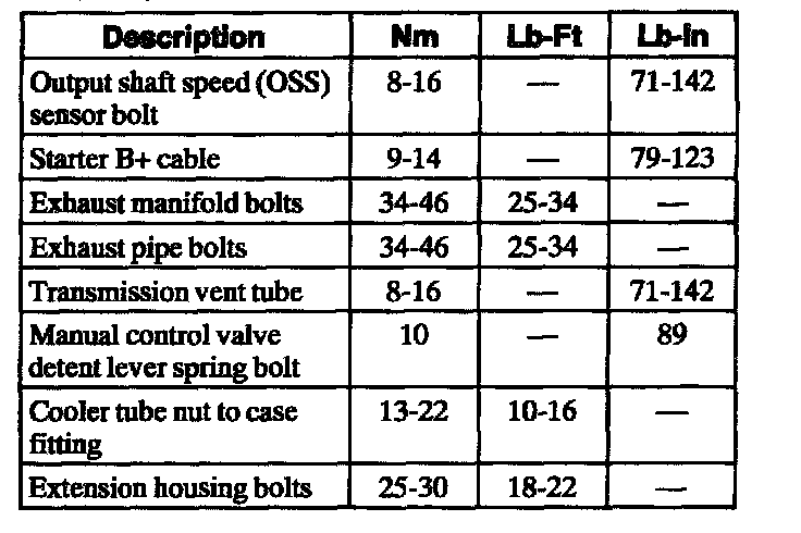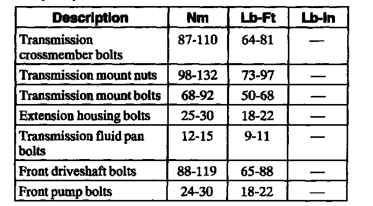 4R70W 12-15 Nm (9-11 ft. lbs.)