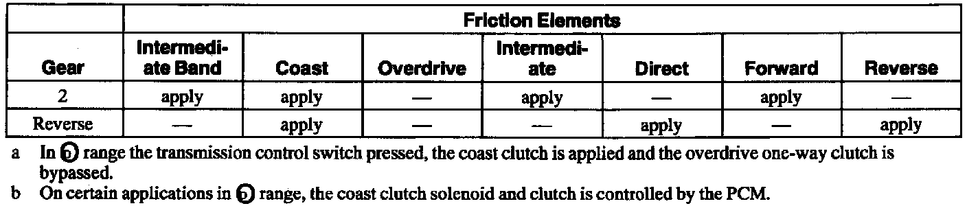 b on certain applications in (D) range, the coast solenoid and clutch is controlled by the PCM.