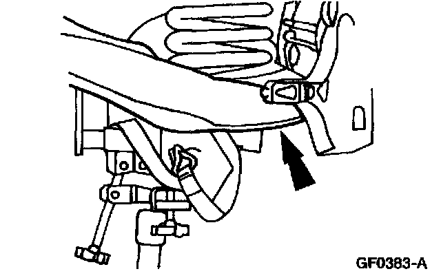 2. NOTE: The forward front suspension upper arm nut must be tightened first while the control arms are held at the curb position ride height.