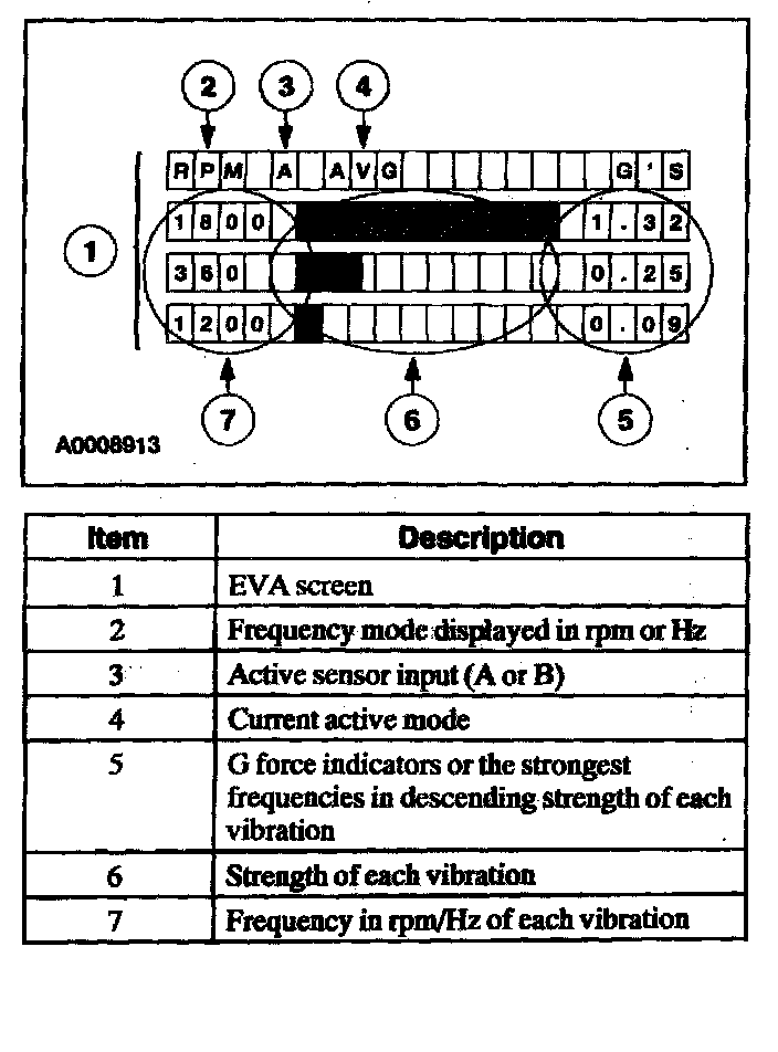 The EVA is a hand-held electronic diagnostic tool which will assist in locating the source of unacceptable vibrations. The vibration sensor can be remotely mounted anywhere in the vehicle for testing purposes. The unit displays the three most common vibration frequencies and their corresponding amplitudes simultaneously. A bar graph provides a visual reference of the relative signal strength (amplitude) of each vibration being displayed and its relative G force. The keypad is arranged to make the EVA simple to program and use. Some of the functions include the ability to average readings as well as record, play back and freeze readings. The EVA has a strobe balancing function that can be used to detect imbalance on rotating components such as a driveshaft or engine accessories.
