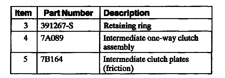 The intermediate clutch works with the intermediate one way clutch to hold the reverse sun gear stationary in second gear. The intermediate clutch re applied in third and fourth gears, but does not transmit power.