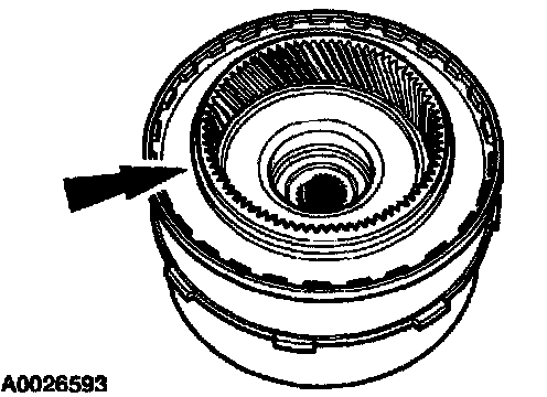 2 Install the intermediate clutch pack starting with an internal spline plate and alternating with external spline plates.