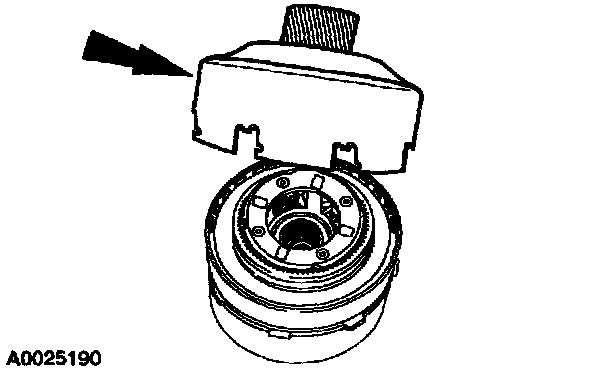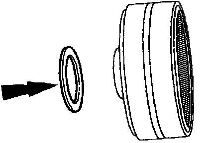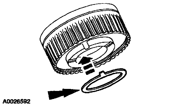 Install the intermediate/overdrive cylinder retaining ring over the intermediate/overdrive cylinder with the ring opening in the 6 o'clock position to allow for the correct fluid drainback.