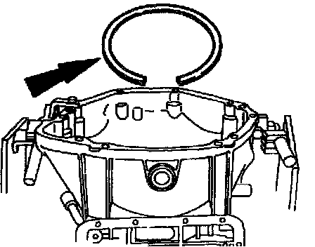 Seat the intermediate/overdrive cylinder retaining ring into the case ring groove with the ring opening in the 6 o'clock position.