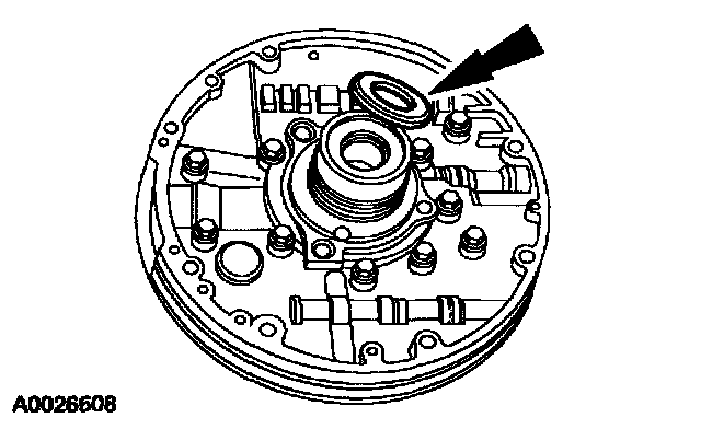CAUTION: Fully seat the front pump assembly using band pressure only. Do not use bolts to draw the front pump assembly into the case.
