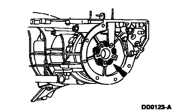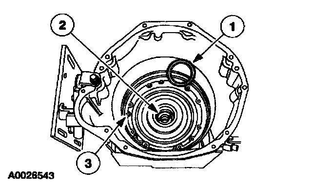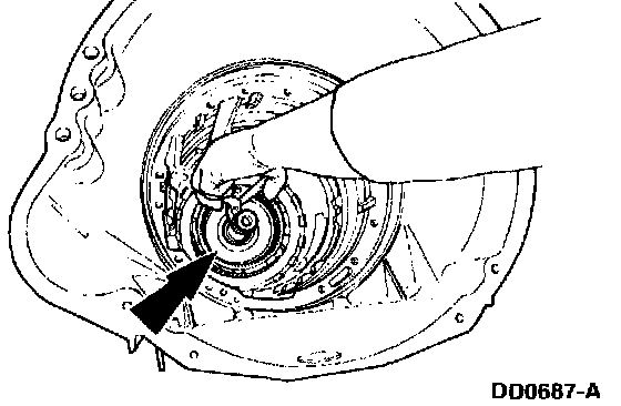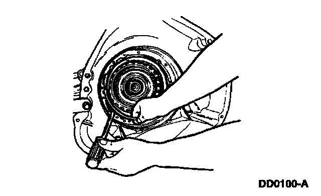 NOTE: Fluid loss will occur when the torque converter is removed.