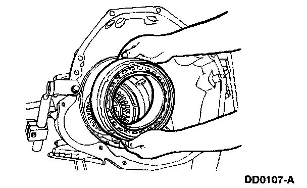 27. CAUTION: During removal, do not misalign the intermediate/overdrive cylinder assembly in the case bore. T1kis can damage the case bore.