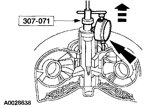 3. Lift up on the special tool and note the dial indicator reading. If the reading exceeds end play limits, install a new or remanufactured torque converter.