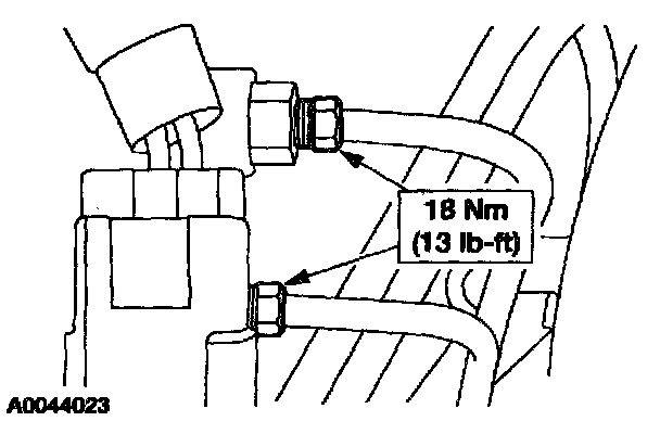 35. NOTE: If the vehicle was not equipped with an inline fluid filter, install a fluid filter service kit (XC3Z7B155-AA). Follow the instructions supplied in the kit. If the vehicle is equipped with an in-line fluid filter, install a new fluid filter (XC3Z-7B155-BA).
