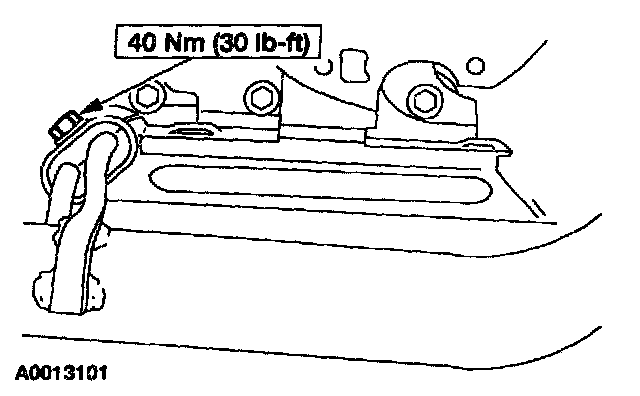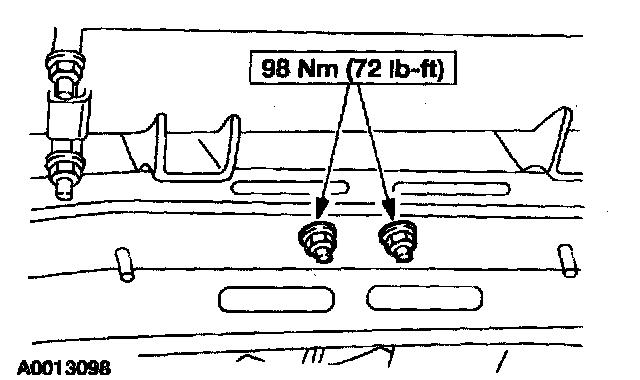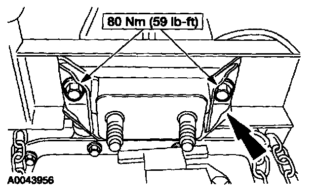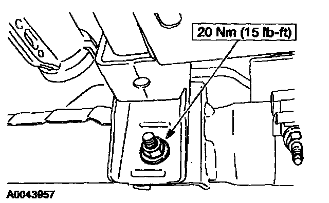 12. Install the transmission support crossmember, the LH and RH bolts and the nuts.