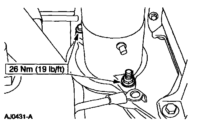 10. Install the transmission fluid fill tube bolt on the RH side of the cylinder head.