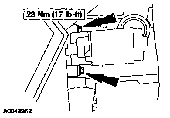 27. Install the starter motor and the three bolts.