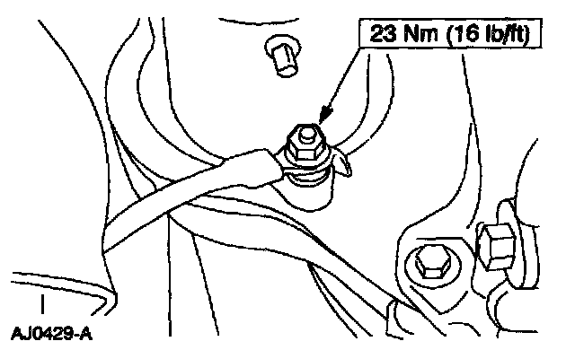 11. Position the exhaust hanger, the rear transmission insulator and install the bolts.