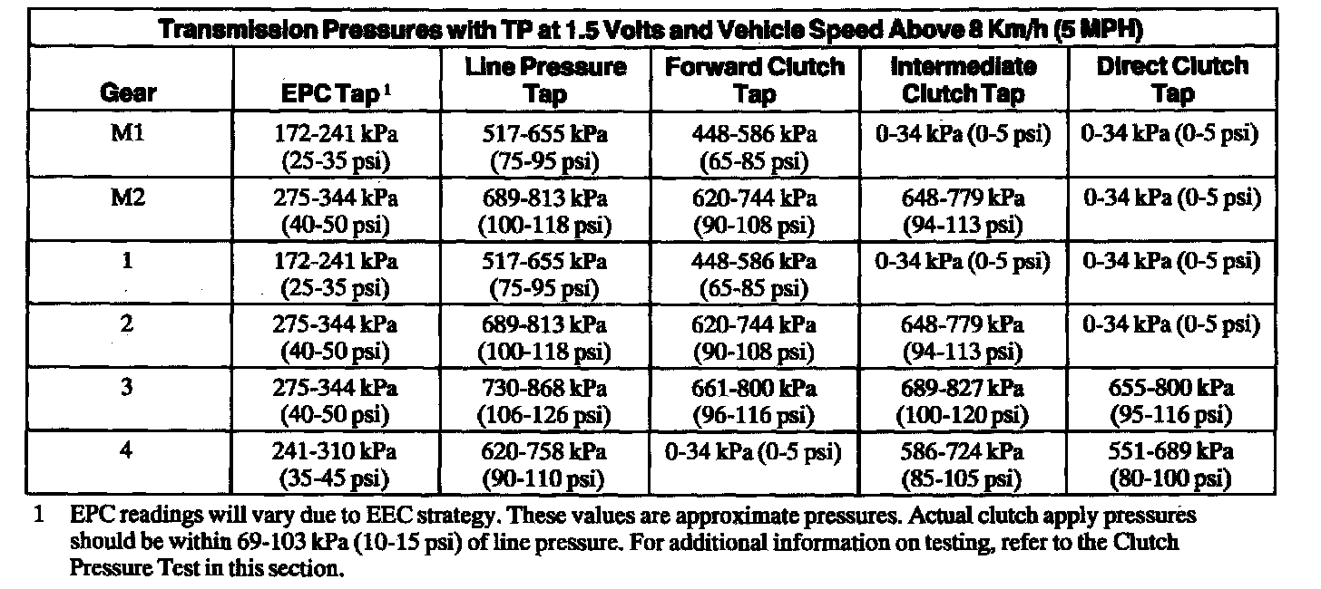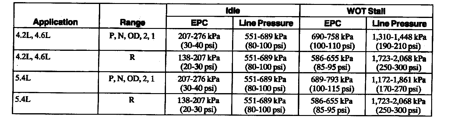 5. Start engine and check EPC pressure. Use the line pressure chart for specifications.