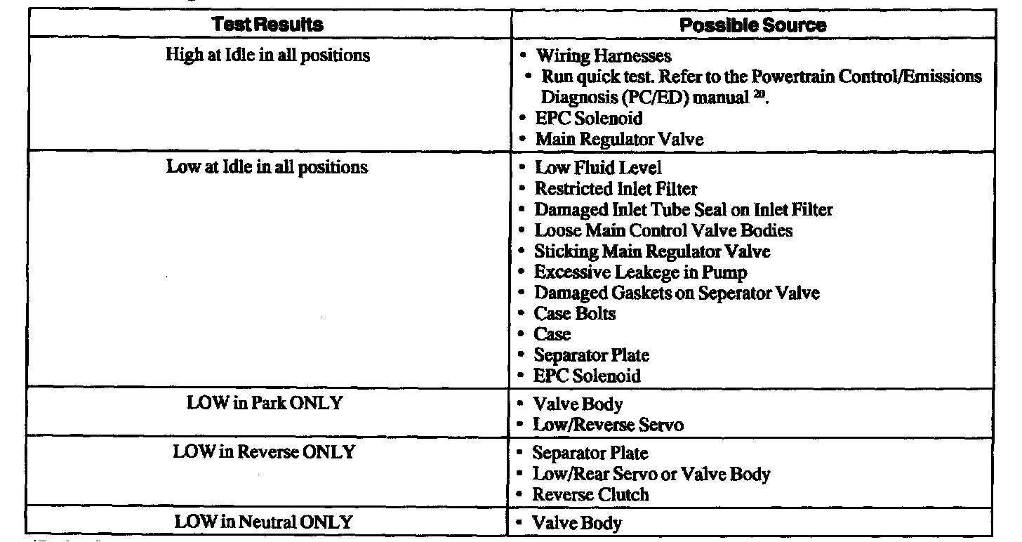 3. Place the ignition switch in the OFF position. If line pressure is not within specification, check EPC pressure.