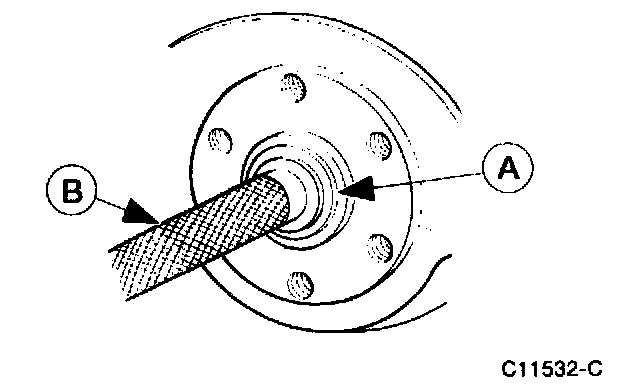 Using the (B) Pilot Bearing Replacer, install the (A) transmission input shaft pilot bearing.