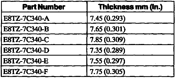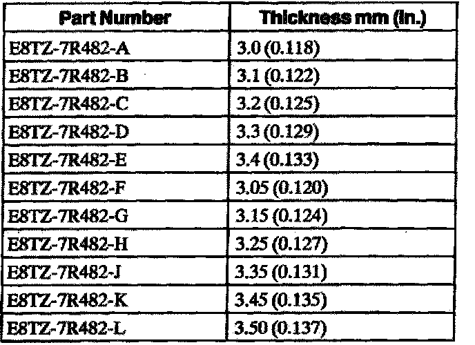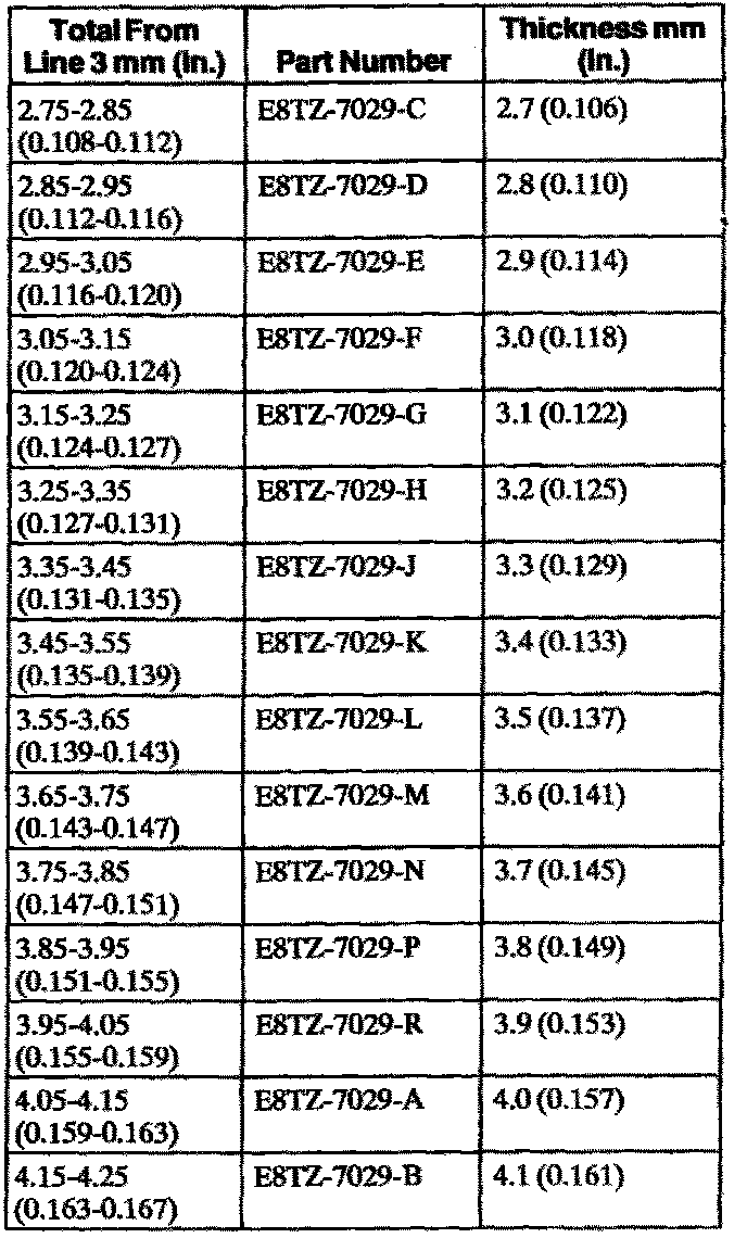 Output Shaft Shim Selective Chart