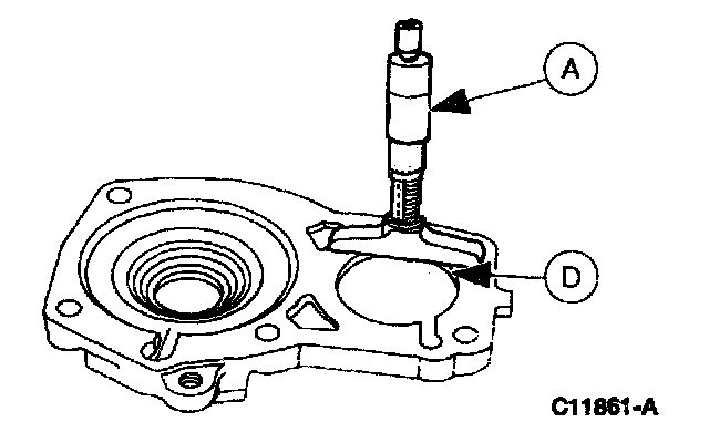 14. Use (A) Depth Micrometer to measure dimension (D) (countershaft bearing retainer depth).