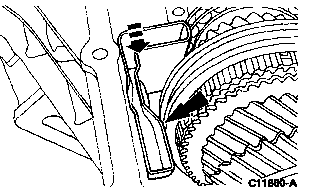 8. Use (A) Bell Housing Seal Replacer to install the (B) front cover oil baffle.