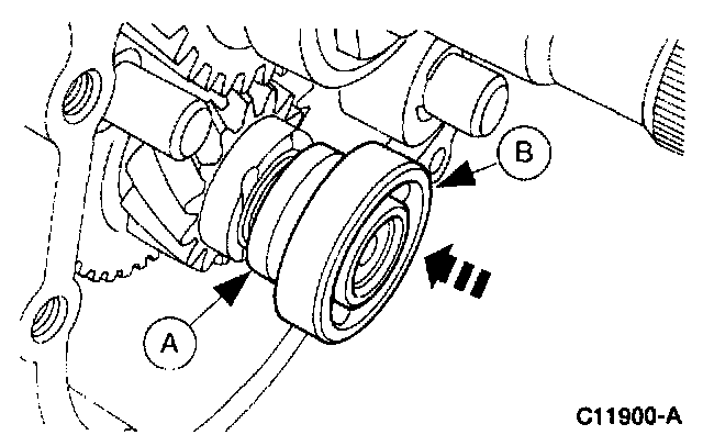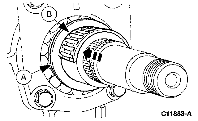 11. Use (A) Depth Micrometer to measure dimension (B) (front bearing retainer depth).