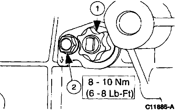 35. NOTE: Apply Silicone Rubber D6AZ-19562-AA or equivalent meeting Ford specification ESB-M4G92-A to reverse idler shaft bolt threads.