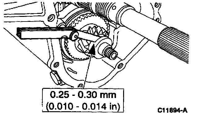 Install the thrust washer and hold it against the shoulder on the countershaft while checking end play. Determine the correct thrust washer to obtain correct end play.