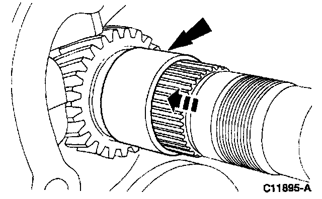 26. NOTE: The reference mark on the synchronizer sleeve must face toward the reverse gear.